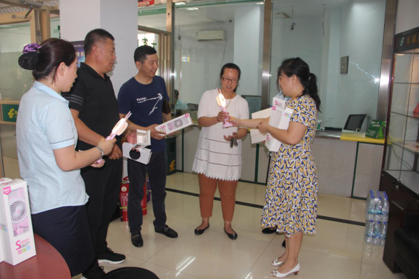 市分公司副總經理兼工會主席魏亞峰率工會副主席李洪彬等先后慰問了愛民郵政支局、橋北郵政支局和愛民投遞部,親手把精美實用的小風扇發放到職工手中,并當場給職工們演示小風扇的功能和如何使用,并詢問了解職工的工作生活情況,悉心囑咐職工們要注意防暑,勞逸結合,讓所有的職工們深受感動。收到慰問品的職工們都特別高興,一致稱贊市分公司工會發放的風扇即實用又美觀,還能當個小臺燈,員工們拿著風扇個個愛不釋手,每個員工的臉上都洋溢著甜甜的笑容。市分公司蔡寶偉副總經理率人力資源主任鞏福興、副主任郭鐳等先后慰問了陽明郵政支局、7個投遞部、信息技術中心和機要通信分局,為他們送去了精美實用小風扇和礦泉水,為職工們吹去了汗水,暖了人心!蔡寶偉副總經理每到一處都詳細詢問了網點收入和經營情況,對陽明中心營業所現場擺放銷售的分銷產品的銷售情況和價格情況進行了了解,對柜員收寄包裹嚴格驗視給予了充分肯定,對郵務網點進度排名第一給予高度評價。耿洪民副總經理率市場營銷部主任孫振波等先后慰問了西安區分公司和東安區分公司網點,為網點職工們送去了企業的關懷、精美實用小風扇和礦泉水。耿洪民副總經理每到一處網點都仔細詢問網點業務發展情況,業務發展中的阻力以及職工在生產生活中遇到的困難等,并囑咐大家在高溫天氣下工作一定注意身體,多喝綠豆水等飲品清涼止渴,在確保安全生產的前提下,保證各項業務正常有序發展。