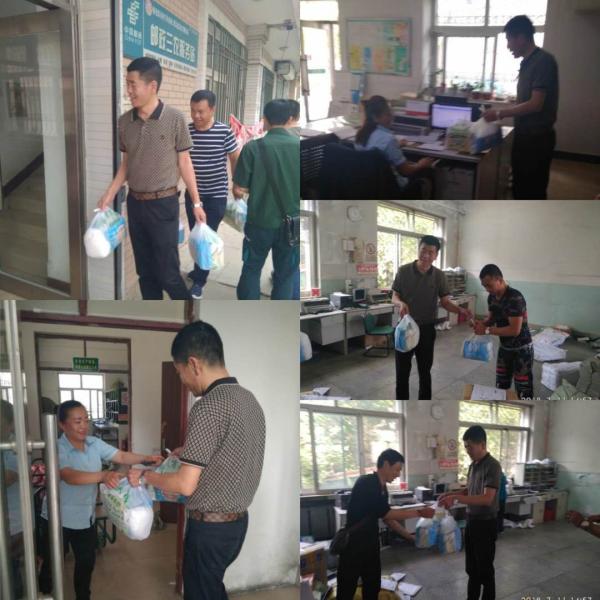2018年7月20日,雙鴨山市郵政工會時洪軍主席帶領工會相關人員,冒著夏日炎炎酷暑到基層生產一線開展“關愛職工夏送清涼”活動,親切地慰問了在高溫下堅守崗位的一線員工,為他們送去了綠豆糕、白糖、礦泉水、毛巾等消暑物品,把公司黨委、行政、工會的關懷送到一線。慰問組先后來到了市包裹投遞局、網運分揀轉運中心、嶺東區分公司、寶山區分公司和四方臺區分公司,時副總經理還深入了解員工的生產生活環境,高溫勞動保護等情況,囑咐員工們在高溫天氣下工作一定要注意做好防暑降溫的自身安全工作。