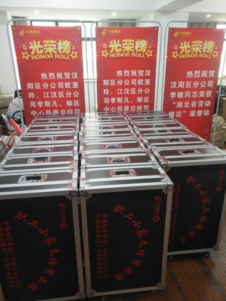 “為200個職工小家配發文體用品箱”是2018年湖北省分公司提出的“為職工辦好六件實事”之一。為將實事辦實、好事辦好,省郵政工會在廣泛征求職工意見的基礎上,通過招投標方式為職工小家量身定制了一批“職工小家文體箱”,內裝22件職工日常健身用器材,有羽毛球、乒乓球、氣排球等群眾性健身器材,有啞鈴、雞毛毽、跳繩等單人健身用品,還有象棋、圍棋等健腦儒雅活動用品。配發的“職工小家文體用品箱”是對職工小家建設環境設施的有力補充,是基層員工開展多樣化健身活動的“神器”。