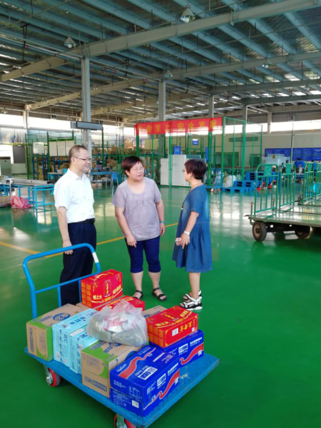 近期,伏天高溫,熱浪襲人,郵通公司領導班子成員分別赴大樓物業部、國際郵件互換局、電商園物業部、智能倉儲中心,對堅守在工作崗位的一線工作人員進行慰問,堅持以人為本,把關心職工工作落在實處。 7月27日上午,郵通公司領導赴大樓物業部,為大樓物業部勤懇辛勞的員工送去防暑降溫用品并與員工深入交談,了解員工的工作狀態及精神面貌及員工生活工作中存在的問題,強調了安全生產、提高消防安全意識的重要性,并叮囑大家專注工作的同時注意勞逸結合,做好防暑降溫措施,確保身體健康。 8月1日上午,郵通公司領導赴國際郵件互換局、電商園物業、智能倉儲中心進行高溫慰問,為奮斗在生產一線的員工送去親切問候及綠豆、砂糖、飲料、藥品等防暑降溫用品。領導班子向不懼高溫,奮斗在工作崗位的員工表示慰問及感謝,強調防暑降溫、安全生產的重要性,要求員工做好防護工作,強化安全措施,確保安全度夏。