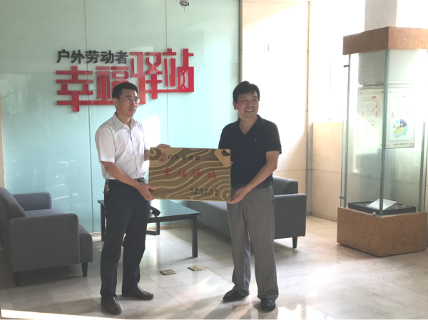 7月31日下午,蕪湖市總工會副主席傅松一行來到蕪湖市郵政公司北京路營業廳,為蕪湖郵政“幸福驛站”授牌。市郵政公司副總經理賈宇明接牌。自2016年全市開設“幸福驛站”窗口以來,市區共有三家窗口單位獲評“幸福驛站”,其中兩家窗口單位獲省總工會首次頒發的“幸福驛站”銅牌,蕪湖郵政是其中之一。市總工會副主席傅松對蕪湖郵政“幸福驛站”的便民服務工作給予了充分肯定。近年來,蕪湖郵政積極開展社會公益活動,向環衛工人、快遞員、志愿者等廣大戶外勞動者無償提供飲用水、休息座椅、報刊閱讀等服務,為他們提供一個驅寒避暑,遮風擋雨的溫馨場所。讓他們熱了可以在“驛站”納涼,冷了可以去“驛站”取暖,累了可以去“驛站”休息,渴了可以去“驛站”喝水,讓“幸福驛站”成為戶外勞動者臨時的“家”。