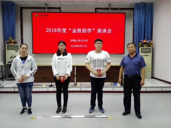 2018年8月17日上午,在高考學子即將步入大學校門之際,雙鴨山市分公司“金秋助學”座談會在市分公司召開。雙鴨山市郵政職工子女中的11名即將步入高校的優秀考生和9名困難職工子女獲得了“金秋助學”助學金。