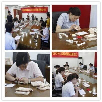技能比武競賽采用以老帶新、實踐操作為主的比賽形式。分單指單張點鈔、多指多張點鈔、人民幣識假技能共三個項目。