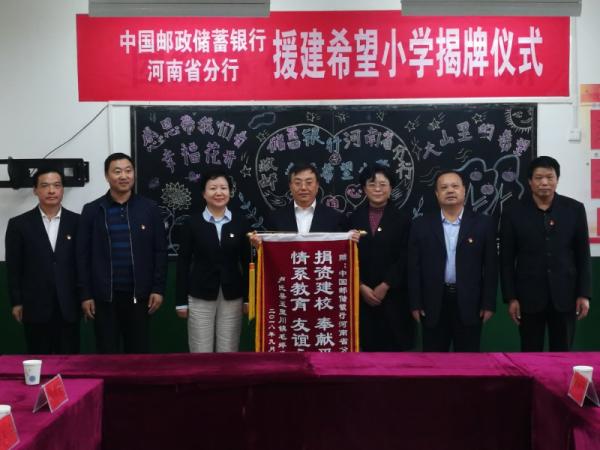 9月19日上午,中國郵政儲蓄銀行河南省分行援建希望小學(xué)揭牌儀式在三門峽盧氏縣五里川鎮(zhèn)毛坪學(xué)校舉行,我行是第一家在盧氏縣援建希望小學(xué)的金融機構(gòu)。這是繼發(fā)放省內(nèi)同業(yè)第一筆盧氏模式扶貧貸款、節(jié)后第一個全省金融扶貧會議后,我行在盧氏金融扶貧工作中取得的又一項第一。
