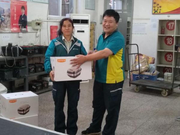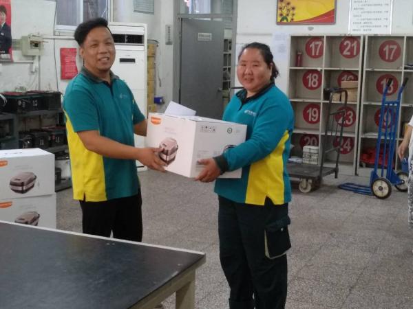 區(qū)郵政工會(huì)根據(jù)競賽方案,及時(shí)為各投遞部配發(fā)了第一階段勞動(dòng)競賽獎(jiǎng)品,昨日已經(jīng)全部發(fā)放到位。今天一早,各投遞部紛紛召開班前會(huì),對(duì)本投遞部收訂優(yōu)秀道段進(jìn)行獎(jiǎng)勵(lì)。拿到收訂階段獎(jiǎng)品的投遞員都非常高興。