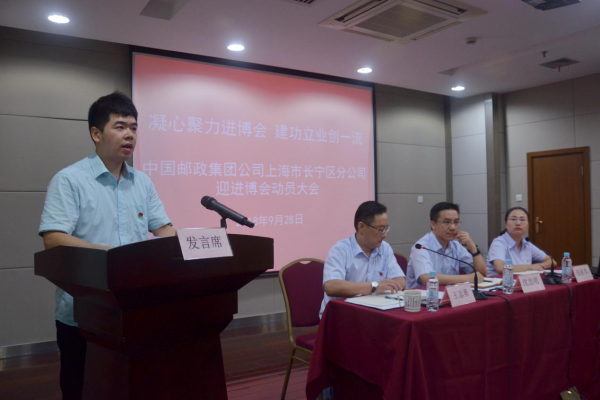 2018年9月28日,長(zhǎng)寧區(qū)分公司召開(kāi)迎進(jìn)博會(huì)動(dòng)員會(huì)。舉辦中國(guó)國(guó)際進(jìn)口博覽會(huì)是以習(xí)近平同志為核心的黨中央著眼推進(jìn)新一輪高水平對(duì)外開(kāi)放作出的重大決策,也是展示上海風(fēng)采的良好契機(jī)。長(zhǎng)寧郵政作為國(guó)企,作為進(jìn)博會(huì)場(chǎng)館臨近主區(qū)域的窗口服務(wù)企業(yè),更是有責(zé)任、有義務(wù),舉全司之力、全力以赴做好各項(xiàng)服務(wù)保障工作。