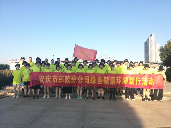 8月29日早上7:00,安慶市郵政工會(huì)組織開(kāi)展了“綠色健康環(huán)湖毅行”活動(dòng),來(lái)自市分公司的近70名員工參加了活動(dòng)。此次活動(dòng)是安慶郵政“綠色郵政”主題系列活動(dòng)之一,大家身著統(tǒng)一的綠色T恤衫,宣傳綠色健康生活理念,展現(xiàn)了安慶郵政員工的綠色文明形象。