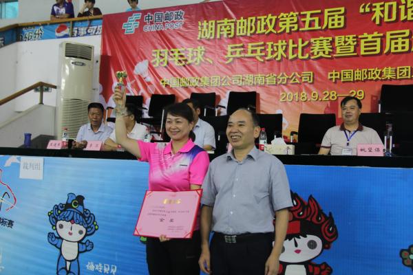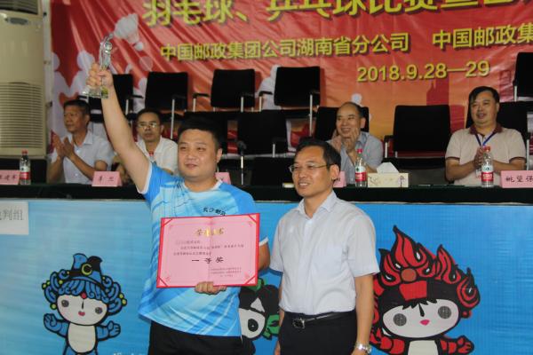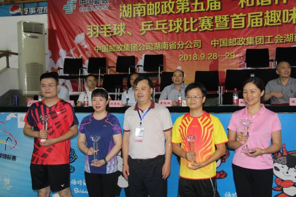 兩天共368場比賽,一場場扣人心弦,一個(gè)個(gè)技藝精湛,一天比一天好看,一場比一場精彩,展現(xiàn)了湖南郵政職工頑強(qiáng)拼搏、奮發(fā)向上的旺盛斗志。比賽最終決出了團(tuán)體前八名和乒乓球男子單打等9個(gè)單項(xiàng)前八名。長沙市分公司聯(lián)隊(duì)、岳陽市分公司聯(lián)隊(duì)、邵陽市分公司聯(lián)隊(duì)獲得團(tuán)體前三名。省公司黨組成員、副總經(jīng)理、工會(huì)主席黃紹湘、省郵儲(chǔ)銀行副行長、工會(huì)主席劉亞斌等領(lǐng)導(dǎo)為獲獎(jiǎng)選手頒獎(jiǎng)。 (湖南省郵政工會(huì))