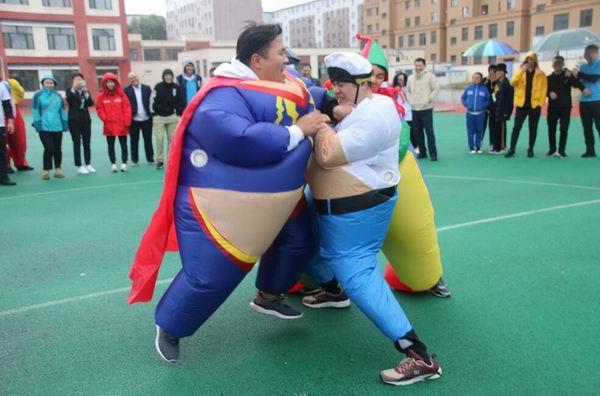 活動現(xiàn)場,職工們情緒高漲,比賽緊張激烈,圓滿完成了瘋狂袋鼠跳、黨務(wù)知識問答接力賽、十人綁腿、拔河比賽等四項團體項目,以及摸石頭過河、趕“豬”跑、超級相撲、乒乓運球等四項個人賽。