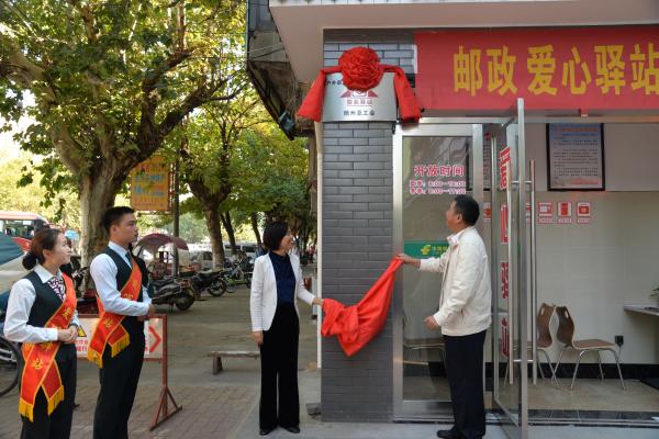 10月12日,隨州市總工會和隨州市郵政分公司舉辦“郵政愛心驛站”揭牌儀式,隨州郵政在解放路和漢東路新建的兩所戶外職工“愛心驛站”正式啟用并對外開放。市郵政分公司黨委書記、總經理陽海龍、市總工會經審會主任徐秀清、市總工會副主席胡艷萍、市郵政分公司副總經理、工會主席李永燕參加揭牌儀式;同時參加揭牌儀式的還有環衛工、快遞員代表和隨州各大新聞媒體。陽海龍和徐秀清共同為郵政愛心驛站進行了揭牌。