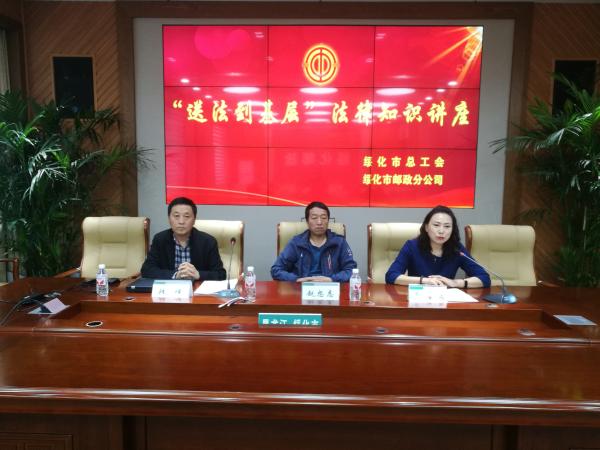 為提升綏化郵政干部職工“懂法、守法、用法”的意識,增強法制觀念,綏化郵政工會與綏化市總工會在8月19日上午,在市郵政分公司六樓小會議室聯合舉辦了“送法到基層”法律知識講座。