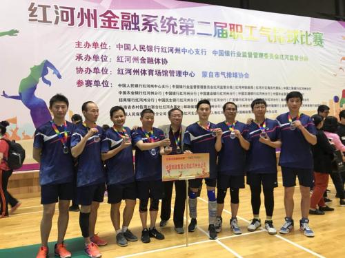 由紅河州人民銀行、州銀監(jiān)局共同舉辦的“紅河州第二屆金融系統(tǒng)職工氣排球比賽”10月12日在蒙自市成功舉辦,來自全州金融業(yè)、保險業(yè)、證券業(yè)等26個單位、40支代表隊近400名運(yùn)動員參加比賽。