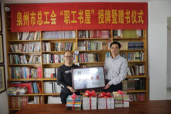 10月19日,泉州市總工會黨組成員、副主席陳坤生,一行來到泉州市分公司,為市級“職工書屋”示范點Lu公益圖書室授牌贈送圖書。市郵政工會主席黃強陪同。