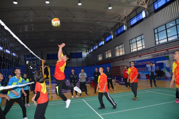 上午9:00時,比賽拉開了帷幕,頓時整個賽場地氣氛緊張起來,賽場上選手個個精神飽滿,熱情高漲,發球、一傳、二傳、扣球,隊員間配合默契,頻頻打出精彩好球,現場的觀眾也忍不住,舉起手機,留下精彩瞬間。