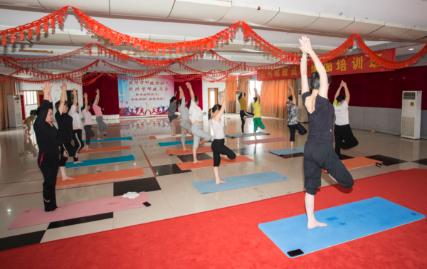 培訓(xùn)班邀請(qǐng)了專業(yè)瑜伽教練為學(xué)員示范、講解、指導(dǎo)。每次一小時(shí)的練習(xí)時(shí)間里,學(xué)員在教練的指導(dǎo)下,伴隨著舒緩的音樂(lè),進(jìn)行身心的放松訓(xùn)練,體驗(yàn)了瑜伽運(yùn)動(dòng)為大家?guī)?lái)的樂(lè)趣。