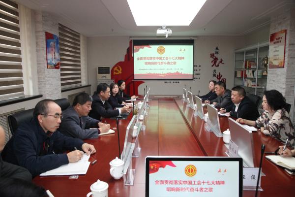 會議介紹了中國工會十七大召開的總體情況,指出這次大會是在我國進入全面建成小康社會決勝階段、中國特色社會主義進入新時代召開的一次重要會議,是全國工會和億萬職工群眾政治生活中的一件大事,對于推動新時代中國工運事業新發展具有重大的意義。會議認真學習了習近平同中華全國總工會新一屆領導班子集體談話的重要講話、李克強總理在大會上作的經濟形勢報告、王滬寧同志代表黨中央向大會的致辭和王東明主席所作的工作報告主要精神,以及中國工會章程最新修改的主要內容。