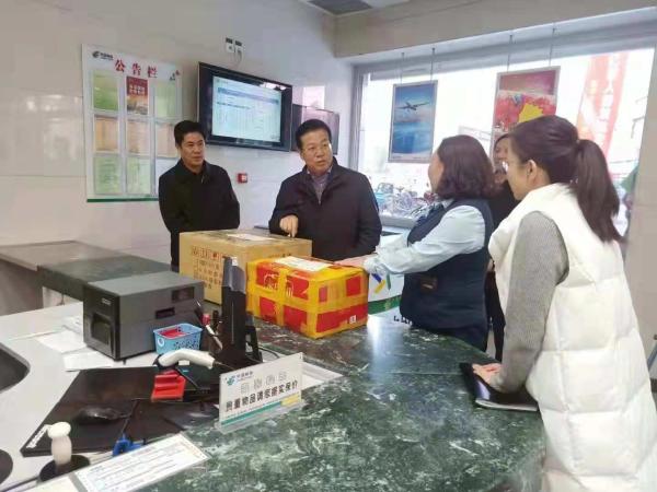 “雙十一”前夕,省分公司黨組書記、總經理周新峰攜省寄遞事業部、省分公司辦公室、金融業務部及工會等部門負責人前往省寄遞事業部互助路營業部、西寧郵區中心局、西寧市分公司火車站攬投部看望備戰雙十一旺季生產一線郵政員工,同時走訪東市場郵政所、火車站郵政所、互助西路郵政所,調研西寧市小商品市場、泰陽國際小商品市場金融與寄遞融合發展,并對重點市場協同發展提出要求。