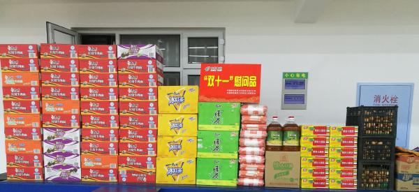 11月20日8時,中國郵政集團公司綏化市郵政工會對轉運班、投遞班全體職工進行了慰問,為奮戰在“雙十一”的一線人員送去了豆油、雞蛋、豬肉、方便面、面包、火腿腸、腐乳等第一批慰問品。