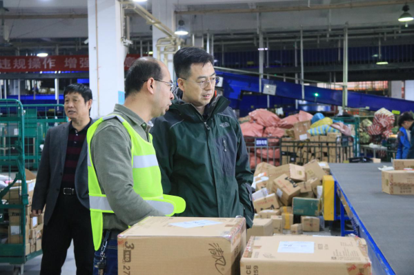 劉主席重點走訪郵件處理中心作業現場、國際小包作業現場及速遞快包作業場地,詳細了解郵速整合后的人員配置、設備運行、高速安檢、作業組織及安全生產等情況,對中心局寄遞翼改革后的資源整合工作給予充分的肯定。劉主席指出,要嚴格按照“雙十一”生產方案進行組織安排,做好員工的工作環境、作業內容、生產生活等后勤保障工作,圍繞支撐全網做好各項工作。同時,劉主席一行還走訪了二樞紐食堂,了解員工的飲食用餐情況,關切員工健康,并囑咐中心局干部職工,在日夜奮戰的同時也應保重身體,以飽滿的精神投入生產。另外,要積極宣傳旺季生產期間不畏艱難、不怕犧牲、奮勇拼搏的先進事跡,引導員工樹標桿、建新功,激發員工的工作動力和干勁,圓滿完成旺季通信生產各項任務。