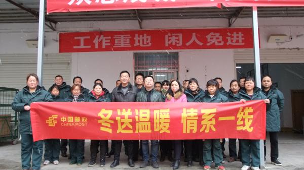 劉總一行先后來到城區投遞部及土關埡支局等為奮戰在基層一線的投遞員們等外勤人員送去了防寒服,叮囑大家寒冬天氣出班要做好保暖工作。在支局,劉總關切詢問支局投遞人員旺季生產生活情況,將市公司準備的防寒服親手為投遞員披上,并特別強調雨雪天氣一定要注意行車安全。