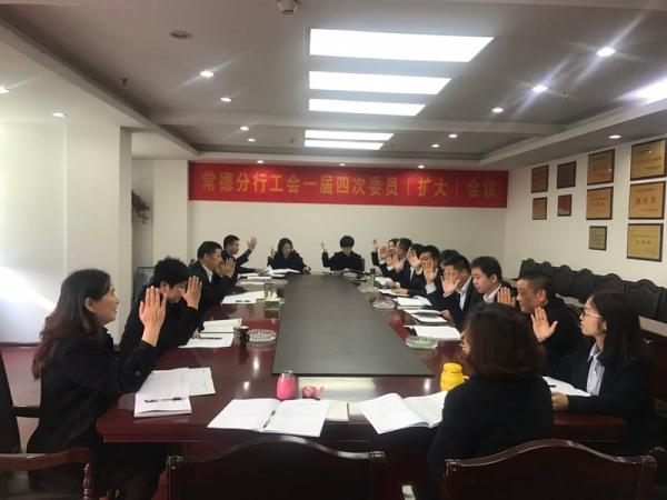 11月30日,常德市分行工會(huì)召開(kāi)了一屆四次委員(擴(kuò)大)會(huì)議,會(huì)議審議通過(guò)了委員替補(bǔ)暫行規(guī)定和替補(bǔ)意見(jiàn)、工會(huì)主席選舉辦法并選舉了工會(huì)主席。替補(bǔ)了6名委員。黨委書記、行長(zhǎng)賈建峰致辭春風(fēng)化雨,給予工會(huì)高度肯定和希望。新當(dāng)選主席彭迎志對(duì)工會(huì)隊(duì)伍提出來(lái)新的挑戰(zhàn),指明了下階段奮斗目標(biāo)。整個(gè)會(huì)議嚴(yán)肅務(wù)實(shí)。各級(jí)工會(huì)干部紛紛表示要把會(huì)議精神學(xué)習(xí)好、宣貫好,全行工會(huì)一條心,進(jìn)一步統(tǒng)一思想提高認(rèn)識(shí),開(kāi)拓創(chuàng)新,在省行工會(huì)領(lǐng)導(dǎo)下,市分行黨委行政大力支持下,在彭主席帶領(lǐng)下把工會(huì)工作做好,邁上新的臺(tái)階。