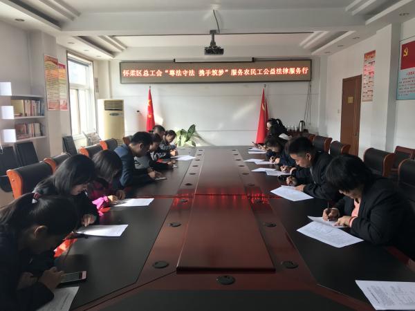 為深入貫徹落實北京市總工會《關于開展“尊法守法·攜手筑夢”服務農民工公益法律服務行動的通知》精神,進一步做好新形勢下為農民工法律服務工作,北京郵政懷柔區分公司工會于11月12日組織部分職工開展“尊法守法·攜手筑夢”服務農民工公益法律知識答題活動。