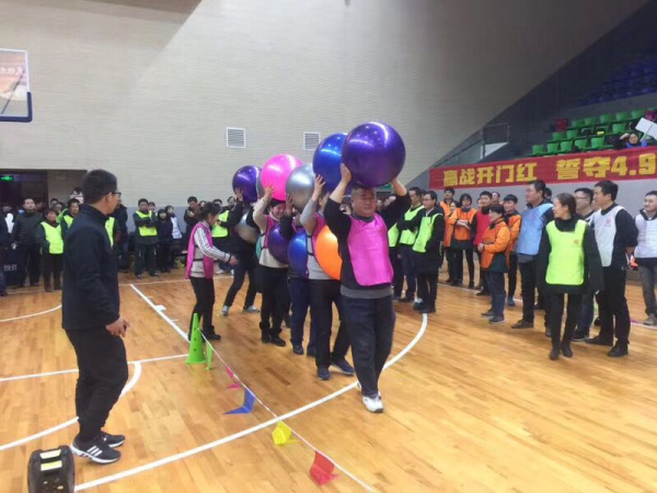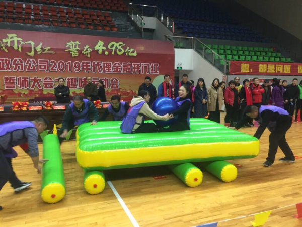 12月24日晚,蔡甸分公司“贏戰開門紅·誓奪4.98億”二○一九年代理金融開門紅趣味運動會在樹藩體育館勝利舉行。由9個支局網點、區分公司機關及速遞公司組成的10個代表隊,共計216人參加了比賽。區分公司負責人、市分公司掛點部室負責人到現場為參賽選手們加油鼓勁并頒獎。