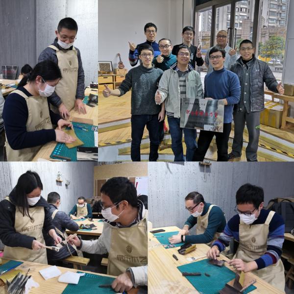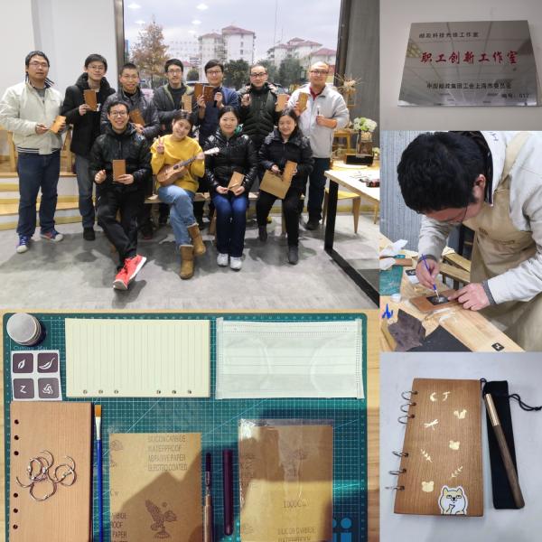 創(chuàng)新工作室的同志們興致盎然,耐心地聽了工具介紹和操作要點講解后,迫不及待地穿上工作圍裙,個個躍躍欲試:在專業(yè)指導下,對木材料進行打磨、上蠟、拼接、粘合、燙金......每組結(jié)對師徒還不忘動手合作,忙得不亦樂乎,仿佛重現(xiàn)創(chuàng)新工作室一派熱火朝天的工作場景。大家度過了一個輕松愉快的下午,暫時告別局內(nèi)工作室的忙碌和代碼,在做中學,在學中收獲,在收獲中享受快樂,把愛融入木作,制作出專屬自己的小作品——匠心鋼筆和思如泉涌筆記本。