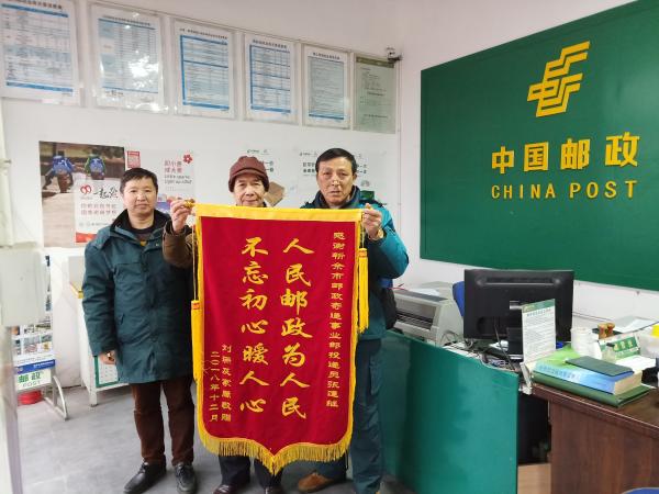 “謝謝你!謝謝中國郵政”。寒冬季節,情暖新余。2018年12月26日,新余郵政收到一位七旬老人送來的錦旗,上面醒目的寫著“人民郵政為人民 不忘初心暖人心”。伴隨著老人的連聲感謝,新余市寄遞事業部西門攬投部快遞員張逢繼的好人好事才傳播開來。