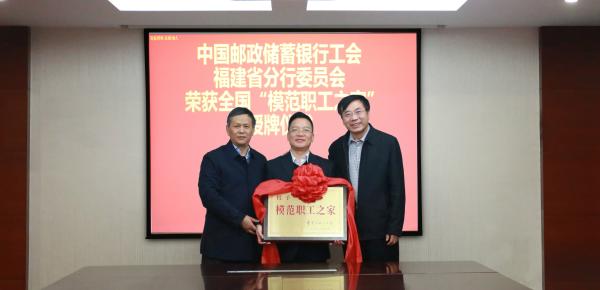 “全國模范職工之家”榮譽稱號是中華全國總工會表彰建家工作的最高榮譽,也是國家對基層工會建家工作的最高褒獎。郵儲銀行福建省分行是2018年度中國國防郵電工會推薦的唯一一家郵政行業單位,也是郵儲銀行系統內第3個獲此殊榮的單位。省郵政工會王全江主席主持了授牌儀式。期間,黃敬平副主席用“五個前頭”充分肯定了郵儲銀行福建省分行在工會工作中取得的優異成績。一是團結帶領群眾聽黨話、跟黨走走在了前頭;二是“高質量發展”走在了前頭;三是在履行“維權、服務”的職能上走在了前頭;四是推進群團改革工作走在了前頭;五是工作創新亮點走在了前頭。