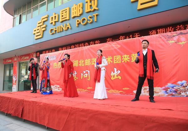 省郵政藝術(shù)團(tuán)送溫暖慰問小分隊(duì)為現(xiàn)場職工和郵政客戶帶來精彩的慰問演出,獻(xiàn)唱了《黃梅飄香》、《這里是湖北》等經(jīng)典曲目,并邀請現(xiàn)場觀眾共同演唱戲曲《夫妻雙雙把家還》。演出現(xiàn)場和諧喜慶,氣氛活躍。省分公司和基層一線員工的心因傳統(tǒng)文化的魅力緊緊連在一起,也彰顯了湖北郵政的強(qiáng)大正能量。活動現(xiàn)場還穿插了郵政業(yè)務(wù)知識有獎答題環(huán)節(jié)?,F(xiàn)場觀眾手持宣傳折頁踴躍上臺搶答,將演出現(xiàn)場氣氛不斷推向高潮。