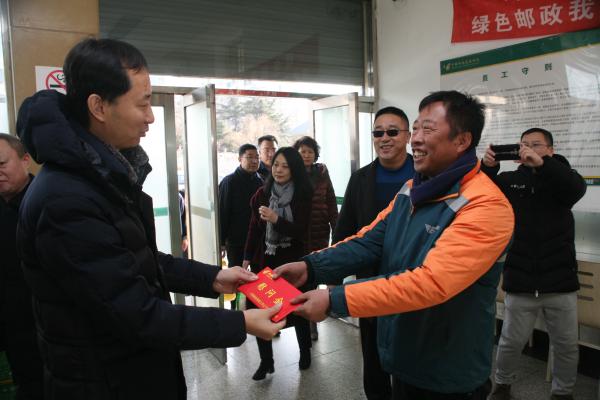 春節前夕,省分公司黨組書記、總經理谷德凱同志和班子成員分5組到省內部分市開展“送溫暖” 走訪慰問勞動模范、困難職工、支局班組和速遞攬投站等活動。