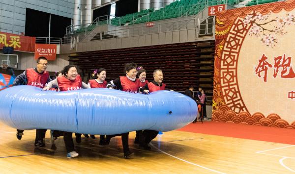 送祝福、賽士氣、戰(zhàn)目標(biāo),處處入心;擊掌聲、吶喊聲、喝彩聲,聲聲入耳。1月28日農(nóng)歷小年這天,在東北林業(yè)大學(xué)體育館內(nèi),中國(guó)郵政集團(tuán)公司黑龍江省分公司紅、黃、藍(lán)、綠、橙、紫6支團(tuán)隊(duì)在比賽場(chǎng)上激情四射,活力無(wú)限。這里正在舉行的是2019年黑龍江省分公司新春團(tuán)拜會(huì)暨機(jī)關(guān)趣味運(yùn)動(dòng)會(huì)。黑龍江省分公司離退休老干部、省分公司機(jī)關(guān)、省寄遞事業(yè)部機(jī)關(guān)、在哈郵政單位的領(lǐng)導(dǎo)班子成員以及中郵保險(xiǎn)黑龍江分公司、中郵證券黑龍江分公司的相關(guān)領(lǐng)導(dǎo)和員工,共同參加了此次活動(dòng)。劉斌總經(jīng)理在會(huì)上致辭。