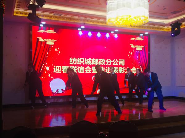 為了進一步倡導“快樂工作、健康生活”理念,增強職工隊伍的凝聚力和向心力,給員工創造展示自我的平臺,紡織城郵政分公司于2019年1月26日下午6點舉辦迎新年聯歡晚會,共有140余名職工歡聚一堂,共賀新春。晚會共有10個節目,涵蓋舞蹈、相聲、秦腔、獨唱、合唱等,均為網點和機關自編自演,中間穿插神秘頒獎,整個晚會精彩不斷、高潮迭起。晚會穿插了三次神秘頒獎,每次頒獎都有針對獎項的頒獎詞,獲獎人上臺領獎時都深感意外。在這臺晚會即將準備就緒的時候,無意中得到一個消息,當天正好是分公司一位員工的生日,為了在晚會上給她帶來驚喜,所里和晚會籌備組提前做了保密工作,分工司工會還專門為她定制了一份生日蛋糕,職工收到蛋糕后激動不已,感謝分公司工會對職工的關愛。