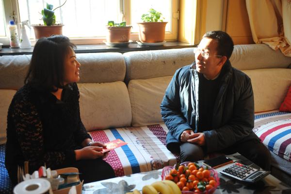 春節將至,為了讓公司困難職工能過一個溫暖、祥和的春節,時艷麗總經理率先帶領辦公室主任入戶慰問離退休人員,在90歲離退休老黨員聞生家中,與他促膝親切交談,詢問身體情況,送去了慰問金的同時也送去了企業的溫暖。在與退休患病女職工胡天波交談中,鼓勵她要對生活充滿信心,克服困難。在特困在崗職工王永貴家中,激勵他要勇敢挑起家庭和工作的擔子,通過個人努力工作和企業的幫扶下逐漸改善家庭生活環境。時艷麗總經理每到一職工家中都帶著親切的笑容,關切的話語,將企業的關心送到了職工的心坎上,得到了職工的擁護和愛戴。龐曉東副總經理、海洋副總經理、吳兆禹副總經理也分別走訪了公司困難職工,他們各位老總在與困難職工交談中都心懷關愛,滿滿的正能量,鼓勵慰問困難職工及家屬,要鼓起勇氣,面對生活中暫時的困難,企業會時刻關心和幫助他們,在企業這個大家庭中享受企業的溫暖。海洋工會主席在慰問失獨職工張洪林家時,為他們夫婦帶去了企業溫暖的同時,也為他的家庭帶去了快樂,張洪林臉上也掛滿了久違的笑容。公司領導的這一行動,充分體現了密切聯系群眾、高效務實的工作作風。