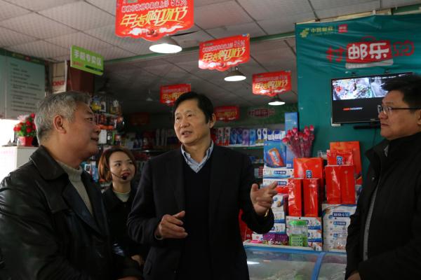 1月29日,張國壽一行來到興國縣分公司高興郵政所和墩丘村郵樂購站點進行走訪慰問。