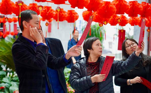 活動現場布置了400條燈謎,有傳統燈謎,有時下流行的找不同、看圖猜人物、看圖猜成語、拼字等青年人喜歡的游戲燈謎,也有難度較大的象棋殘局燈謎,員工們聚集在燈謎前或冥思苦想,或三五成群小聲探討,猜出答案的員工各個喜笑顏開。活動現場呈現一派歡樂祥和的節日景象。