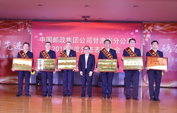 表彰會上,全體人員觀看了專題片《奮進新時代》,省分公司領導分別為全省先進單位、先進集體、先進個人代表進行頒獎授牌,先進單位代表天水分公司、先進先進個人代表唐和順、孟治廷、雷艷艷、樊瑛、于潔分別結合自身工作實際,分別發表了激昂奮進的獲獎感言。 2018年,全省郵政以習近平新時代中國特色社會主義思想為指導,深入學習貫徹黨的十九大精神,落實中央巡視整改要求,圍繞集團公司發展戰略和決策部署,全面加強黨的建設,認真履行普服義務,加快改革創新,推進轉型升級,企業效益不斷提升,服務水平不斷提高,有力推進了甘肅郵政高質量發展。全省郵政廣大干部職工團結奮進,攻堅克難,積極投身企業改革和經營發展,奮力建功新時代,為全省郵政發展做出了貢獻,涌現出了一批先進單位、先進集體和先進個人,展現了甘肅郵政職工良好的精神風貌和過硬的職業素養。為激勵先進,凝聚力量,鼓舞干勁,省分公司、省郵政工會授予白銀市分公司等6個單位為“2018年度全省郵政先進單位”稱號,蘭州市安寧區分公司攬投二部等44個集體為“2018年度全省郵政先進集體”榮譽稱號,唐和順等51人為“2018年度全省郵政先進個人”榮譽稱號。