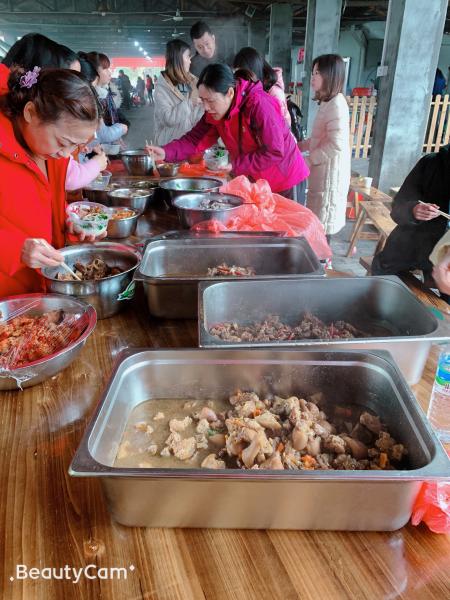 活動自帶食材來到鮮果紅農(nóng)莊,將3個自助柴火灶臺分配給新余市郵政工會各部門分會使用,大家分工協(xié)作,各司其職,洗菜、切菜、燒柴火、掌勺井然有序。另外,舞蹈愛好者們聚集在一起翩翩起舞,大家一邊欣賞舞蹈一邊快樂勞動,場面和諧溫馨。時間在歡快的音樂聲中飛逝,不一會兒,紅燒牛排、啤酒鴨和撈雞撈肉等美味菜肴就新鮮出爐了,大家看著這些令人饞涎欲滴的美味,都迫不及待的過來嘗嘗鮮。