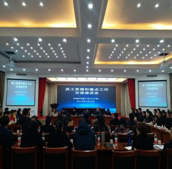 為進一步加強與員工的溝通交流,在思想上形成共識、達成一致,3月3日,巴南片區分公司(本部)在四樓會議室召開了員工思想和重點工作座談會。座談會圍繞分公司工作報告、七大行動計劃尤其是雙關心工作開展交流討論。分公司領導,各部室、營投局負責人,各支局、所負責人,網點管理團隊人員,班組負責人,部分青年員工代表參加了座談會。