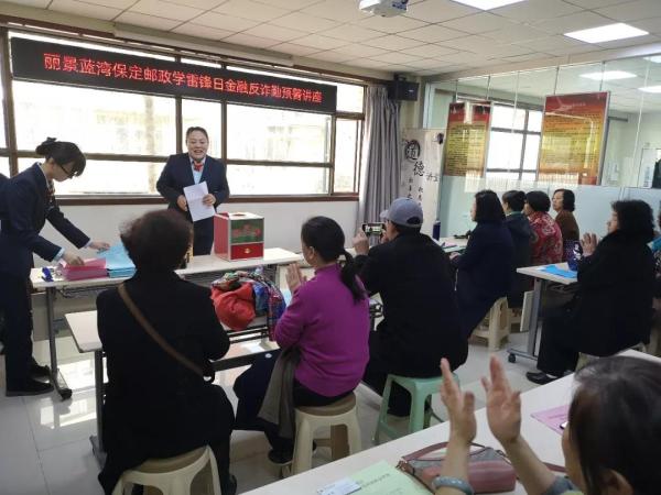 保定市分公司與麗景藍(lán)灣社區(qū)辦聯(lián)合舉辦“學(xué)雷鋒送溫暖暨金融反詐騙預(yù)警”便民服務(wù)活動,為社區(qū)居民便民服務(wù)普及金融知識。