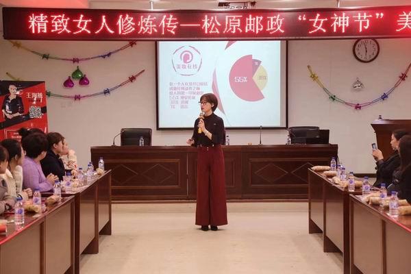 在三八國際勞動婦女節來臨之際,松原市郵政工會舉辦“精致女人修煉傳”女神節美麗沙龍,現場結合職場女性的妝容妝面進行設計,采取老師講解和現場互動形式,詮釋和展現郵政女職工的靚麗風采。為了給女同胞祝賀節日,現場還有男員工們自己動手制作西點和水果撈,為活動增添了歡樂喜慶的色彩,使廣大女職工們度過了一個愉快難忘的三八節。(吉林郵政工會)