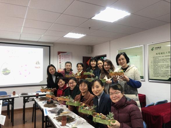 在溫馨愉悅的氛圍中,女同志們捧著各自的作品互相展示,合影留念。看著造型精美的各種器皿、綠意盎然的苔蘚多肉、錯落有致的景觀布設,既可以在繁忙的工作中享受了難得的悠閑時光,又裝點了環境,更增進了同事之間的相互交流,提升了團隊凝聚力。(福建郵政工會)