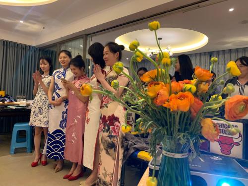 旗袍是我國的國服,旗袍之美,宛如古典的花,盛開在時光深處,典雅而高貴,旗袍也已成為中國傳統文化中最具發展魅力的代表之一;古箏是我國的傳統彈撥樂器,古箏之韻,以行云流水的意境和細膩委婉的情調,流淌出我國幾千年豐富多彩的民族音樂文化水脈。活動現場,市旗袍協會的理事辛紅珍女士從旗袍的歷史淵源和發展講起,詳細介紹了旗袍的起源、名字由來、旗袍的審美、旗袍和女人的故事以及旗袍在當今國際服裝潮流上的影響,話語中啟迪著我們理解作為新時代的女性,要熱愛工作、生活,做一個優雅的女子,擁有一份屬于自己的獨特魅力。之后,進行了古箏名曲賞析。市古箏協會的三位老師分別為大家演奏了不同時代的經典名曲《漁舟唱晚》、《高山流水》等,還與女職工配合“吟詩彈琴”,共同表演了唯美的《春江花月夜》。大家仿佛時而看見落日余暉里滿載而歸的漁民,時而置身于煙雨江南聞到淡淡的茉莉花香,時而走進了靜謐的荷塘,時而置身于“高山”與“流水”之間……