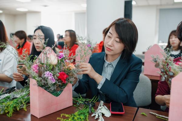 讓繁花點亮你的生活。鮮花永遠是女神們的最愛!看著大家細心聆聽了小馬老師的講解,把自己手里的花朵變成一份份精致的花籃,臉上露出燦爛的笑容,讓心情更美麗。