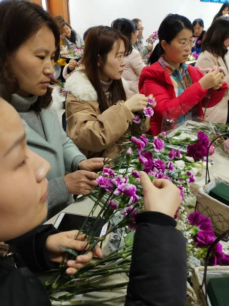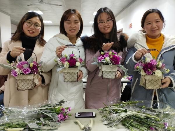 大家仔細認真聆聽老師的講解,認識了各種花的特性,了解了花色的搭配與插花的技巧。聽完老師的講解,大家都迫不及待的動起手來。認真的女人最美麗,好不遜色手中的鮮花!經過大家的努力,一件件炫目多彩的花籃精彩紛呈。活動評出了一等獎1個,二等獎2個,三等獎3個。