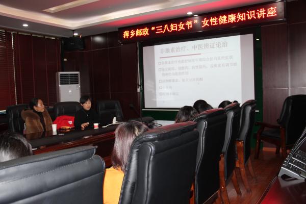 為普及健康知識,加大女職工普惠力度,3月6日下午,萍鄉(xiāng)市郵政工會邀請湘雅萍礦合作醫(yī)院婦科主任醫(yī)師楊方和助理肖蓮玉來到市分公司會議室,舉辦了一場女性健康知識講座,共有39名市分公司本部女職工聆聽了講座。
