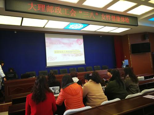 3月7日早上,州郵政工會邀請體檢中心的婦科專家為全體女職工進行女性健康知識講座,不少女職工在現場進行了健康咨詢,講座結束后,大家到達洱海公園,開始登山比賽。三月的春天空氣清新,景色怡人,大家放下手機、離開電腦、走出辦公室、走進大自然個個心曠神怡,感受著大自然的美麗,交流著工作的心得,分享著生活的快樂,歡聲笑語在林間傳播,傍晚進行了跳繩比賽和女性權益知識競答,現場氣氛熱鬧,輕松愉快。 次日合作單位為女職工進行了簡易體檢,第二批次的女職工又開始了一天的活動。