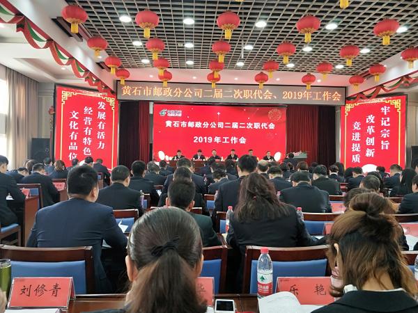 2019年3月19日,黃石分公司召開二屆二次職代會暨2019年工作會。會議深入貫徹省分公司一屆四次職代會、2019年工作會議精神,總結回顧了2018年取得的成績及郵電分營以來黃石郵政改革發展歷程,安排部署了2019年工作任務。