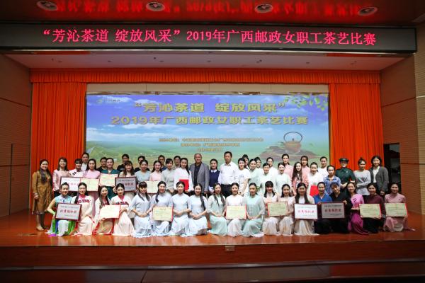 為推進廣西郵政企業(yè)文化建設(shè),豐富女職工的文化生活,弘揚和激發(fā)廣大職工珍愛生活的高尚情操,充分調(diào)動廣西郵政女職工建設(shè)廣西郵政的積極性、主動性和創(chuàng)造性,廣西區(qū)郵政工會于3月29日在首府南寧市舉辦“芳沁茶道 綻放風(fēng)采”2019年廣西郵政女職工茶藝比賽。這次比賽由區(qū)郵政工會女職工委員會承辦,本著凝聚巾幗力量,激發(fā)創(chuàng)新活力,發(fā)揚自信、自強的精神,旨在讓有茶藝愛好的女職工發(fā)揮創(chuàng)造力,并以此展現(xiàn)活躍女職工的巾幗風(fēng)采。全區(qū)各地市、直屬單位及機關(guān)共18支代表隊,100名女職工參賽。此次活動得到區(qū)分公司領(lǐng)導(dǎo)的高度重視,區(qū)分公司黨組書記、總經(jīng)理李凱樂、區(qū)分公司副總經(jīng)理、區(qū)郵政工會主席曹勁松、區(qū)分公司副總經(jīng)理羅燕蒞臨觀摩比賽。曹勁松主席致開幕辭。
